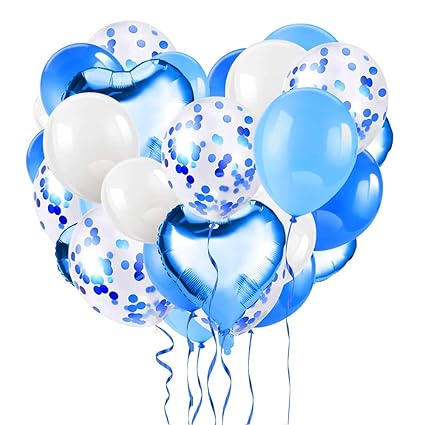 Combo Set Of 5 Metallic Blue 5 Pastel Blue 5 White 4 Heart 10 Confetti For All Celebrations