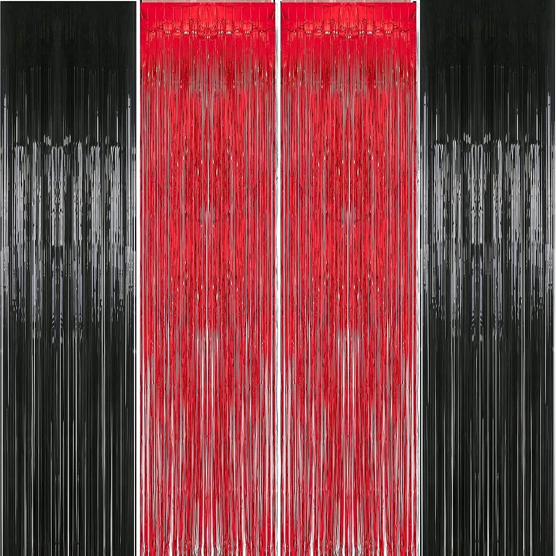 Pack Of 4 Black Red Foil Curtains Happy Birthday Party, Bridal Shower