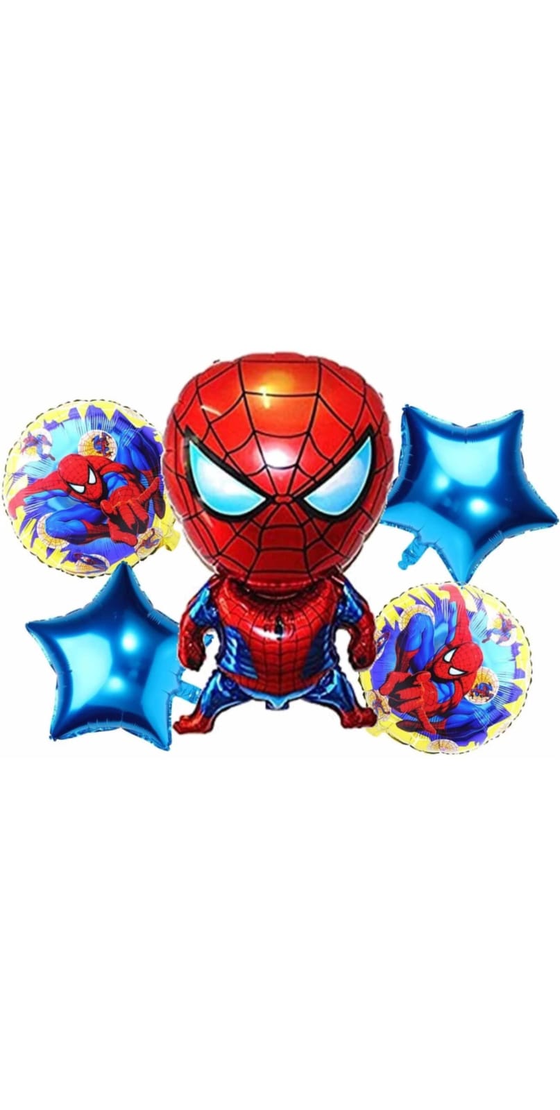 Spiderman 5 Pc Foil Balloons Bouquet Set Red Blue Superhero Birthday Party Decoration Spider Man Theme for Boys Spider-man Party Supply Balloon Combo