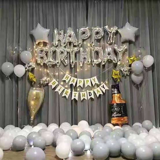 Simple Ash And White Balloon Decoration For Wall House Party