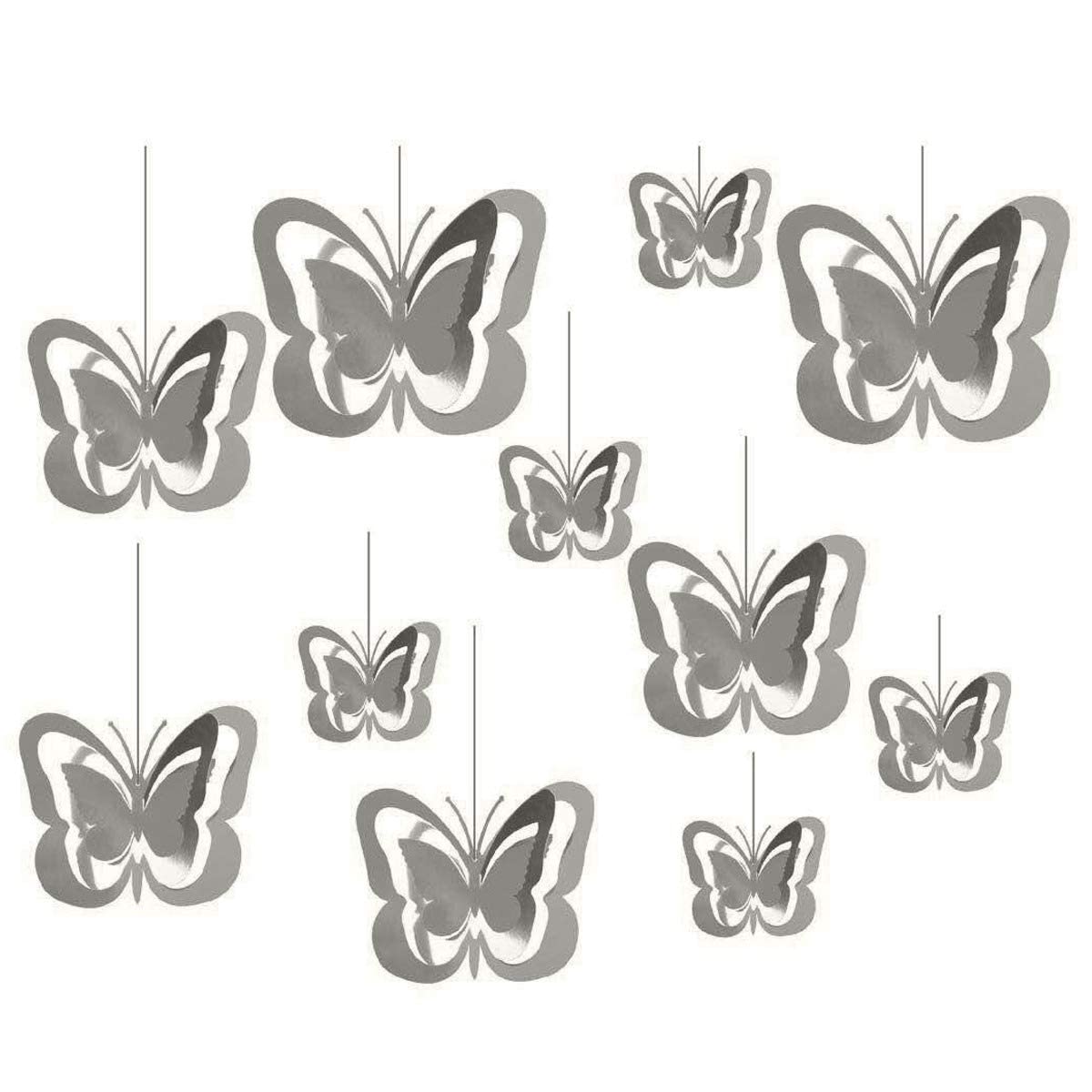 3D butterfly Shape Hanging Strip Decoration Kit for Birthday, Anniversary, Baby shower, bachelorette party & Festival home decore (Silver- Butterfly)